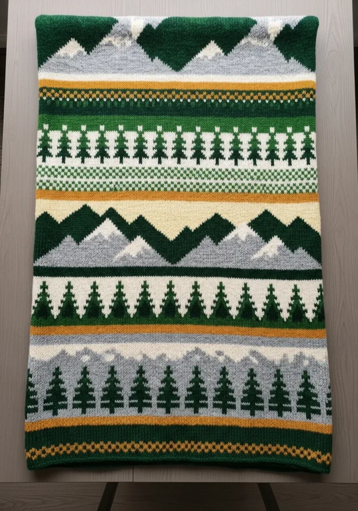 Mountain Forest Fair Isle Blanket Panel