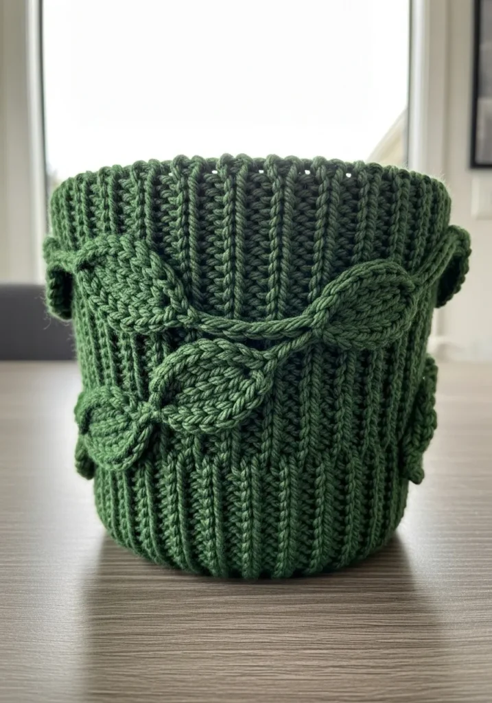 I love projects like this because they make organization feel stylish instead of boring. When I can tidy up my space with something I made myself, it feels so satisfying. It is also a great way to practice cables on a larger scale without committing to a sweater, and the result looks impressive sitting on a shelf or desk.