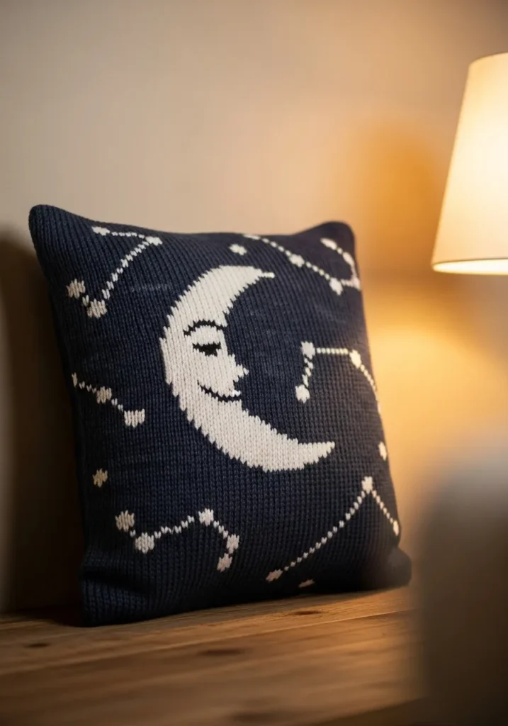 Home decor projects like this always inspire me because they transform a space so easily. I love knitting something that becomes part of my everyday surroundings. It feels creative and slightly magical, especially when the design has a whimsical theme like the night sky.