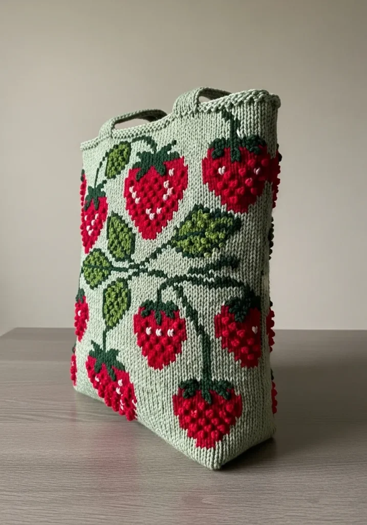 I absolutely love projects like this because they make everyday errands feel cute and intentional. If I am going to carry a tote anyway, I would much rather it be covered in strawberries that make me smile. It is such a fun way to practice colorwork without committing to a huge garment, and the result feels both practical and adorable.