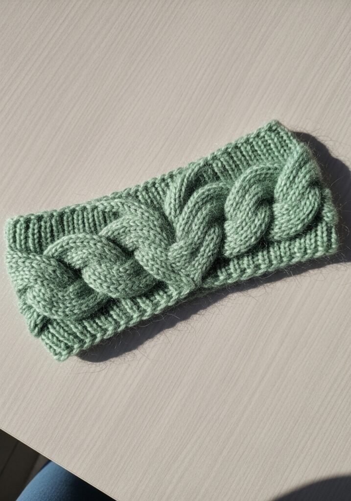 What I absolutely love about this design is how it takes one single cable pattern and just lets it breathe and be the whole star of the show without any distractions. There is something really freeing about a project that is this focused and intentional. The cable itself looks impressive but it is built on a repeat that becomes very natural to memorize quite quickly, and because the band is such a limited number of stitches wide you can really focus all your attention on getting those crossovers looking crisp and even. Mint green is also such a fresh and unexpected color choice for a winter accessory that this ends up feeling really modern and a little bit different from every other grey or cream ear warmer out there.