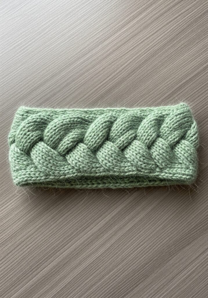 Cable headbands are one of my all-time favorite quick knit recommendations because you get such a high-impact result from a relatively small amount of yarn and time. This wider braid style looks extra impressive but the actual cable repeat is very manageable once you get the hang of the crossover sequence, and because the piece is so short you will have it memorized before you are even halfway through. Sage green is such a universally flattering color too, so this is the kind of thing you can genuinely gift to almost anyone and know they will reach for it constantly. I would honestly suggest making two at a time because you will want to keep one for yourself the moment you finish the first.