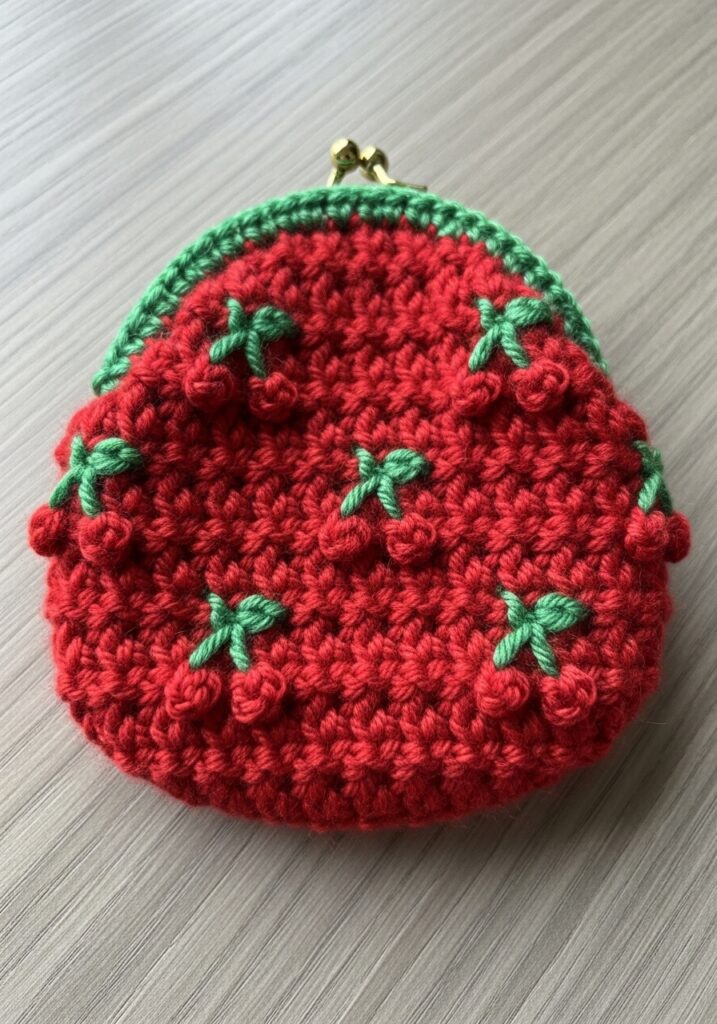 Strawberry Bobble Stitch Coin Purse with Gold Clasp