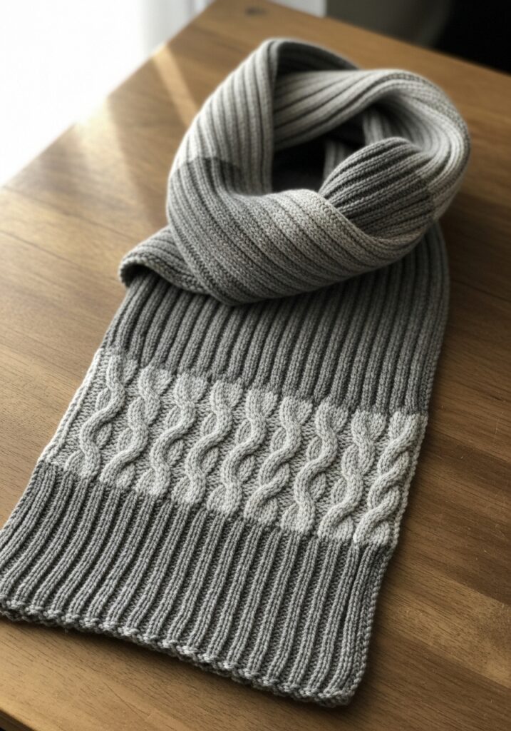What I love most about a project like this is how it combines two classic knitting techniques in one satisfying piece. The ribbing sections are wonderfully rhythmic and almost relaxing to work through, and then the cable panels give you that engaging, brain-engaged knitting that keeps things interesting. I find that scarves are such a great format for practicing cables because you get to repeat the pattern so many times that it really becomes second nature by the end. If you’ve been wanting to try cable knitting but felt a little nervous about it, this kind of project is genuinely the perfect place to start. Plus a grey scarf goes with literally everything, so you’ll actually wear it all winter long.