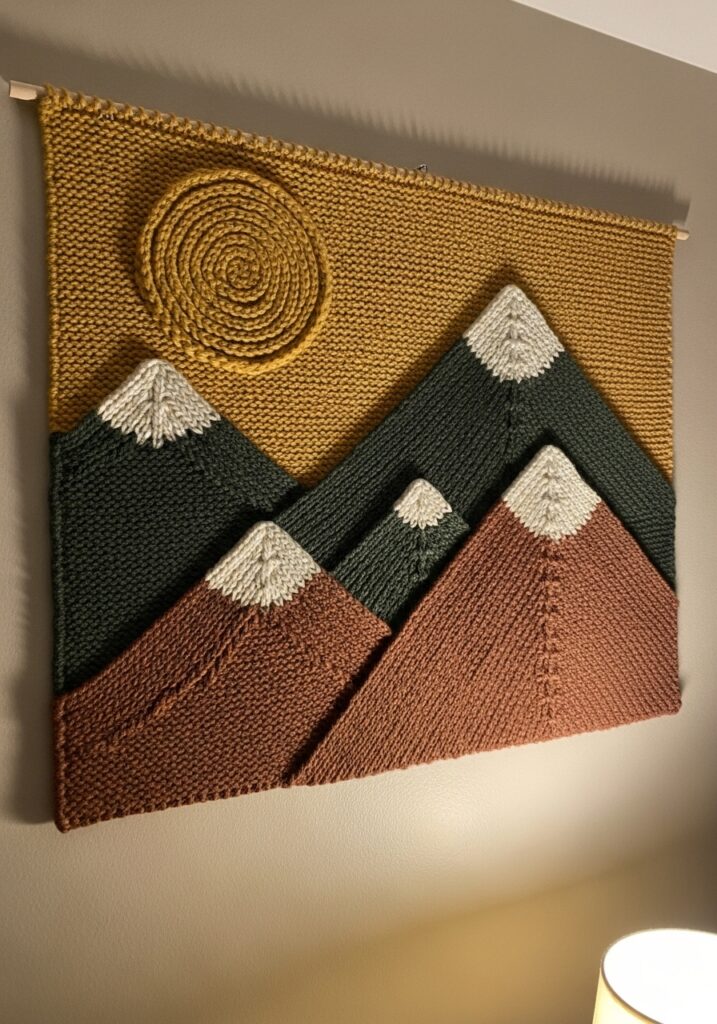 I am so inspired by projects that prove knitting is not just for wearables, and this wall hanging is exactly that kind of reminder. The construction is actually more approachable than it looks because each mountain section is worked separately and then the pieces are assembled together, which means you can tackle it in stages without feeling overwhelmed. Choosing the color palette is honestly half the fun, and you could easily swap the earthy tones for cool blues and purples for a completely different vibe. If you have been wanting a handmade statement piece for your home that people will genuinely stop and ask about, this is absolutely it.