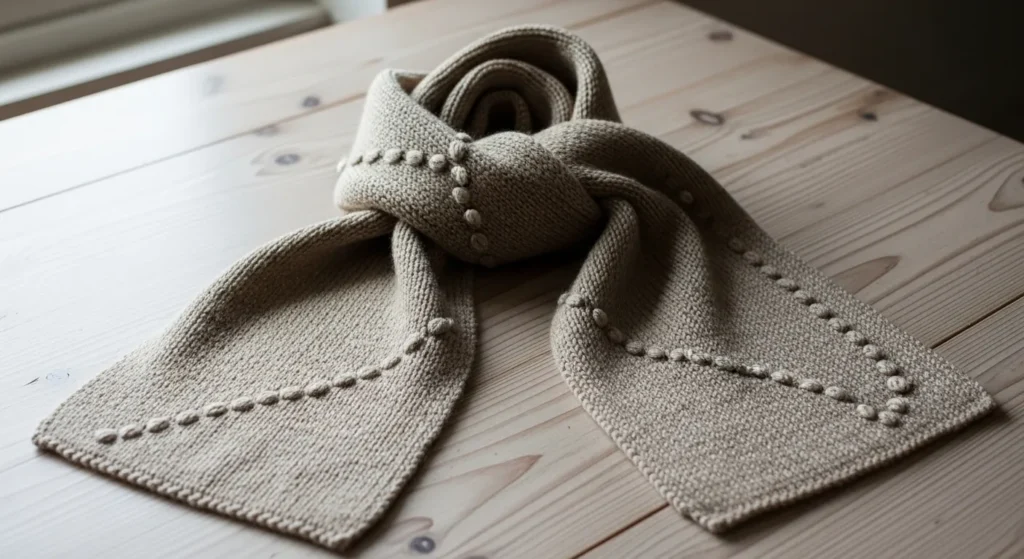 I really love this kind of design because it feels thoughtful but not fussy. If you’re into minimal style projects that still feel creative, this one is such a good fit. The base scarf is easy and soothing to knit, and the embroidery lets you play around without pressure. It feels like the perfect project for slowing down and enjoying the process while ending up with something you will actually wear.