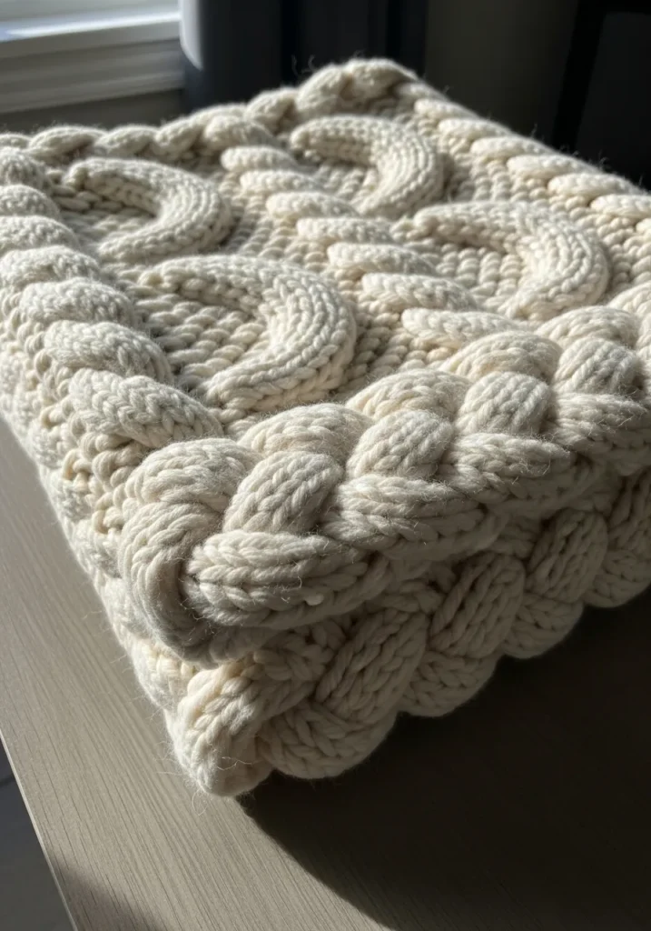 If you are into knitting projects that feel calming and rewarding, this one is such a treat. I love how the chunky yarn shows off every stitch so the cables really stand out as you go. It feels creative without being stressful, and the end result looks like something you would spot in a cozy home magazine. This is the kind of project that makes you want to knit just one more row before bed.