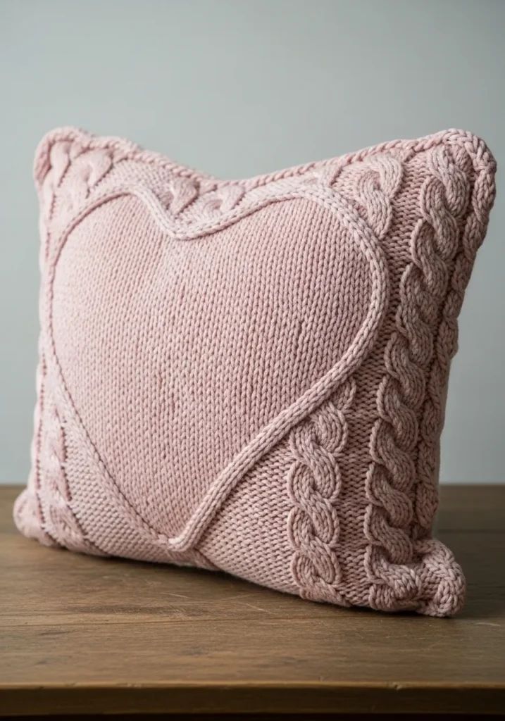 This chunky knit cable pillow is soft and romantic with a cozy handmade feel. It is knit using bulky yarn in a gentle blush pink shade that highlights the thick cable borders and smooth central panel. The raised braided stitches frame the pillow beautifully and add bold texture without feeling heavy. The clean edges and plush shape make it look inviting while still feeling polished enough for a sofa or bed.